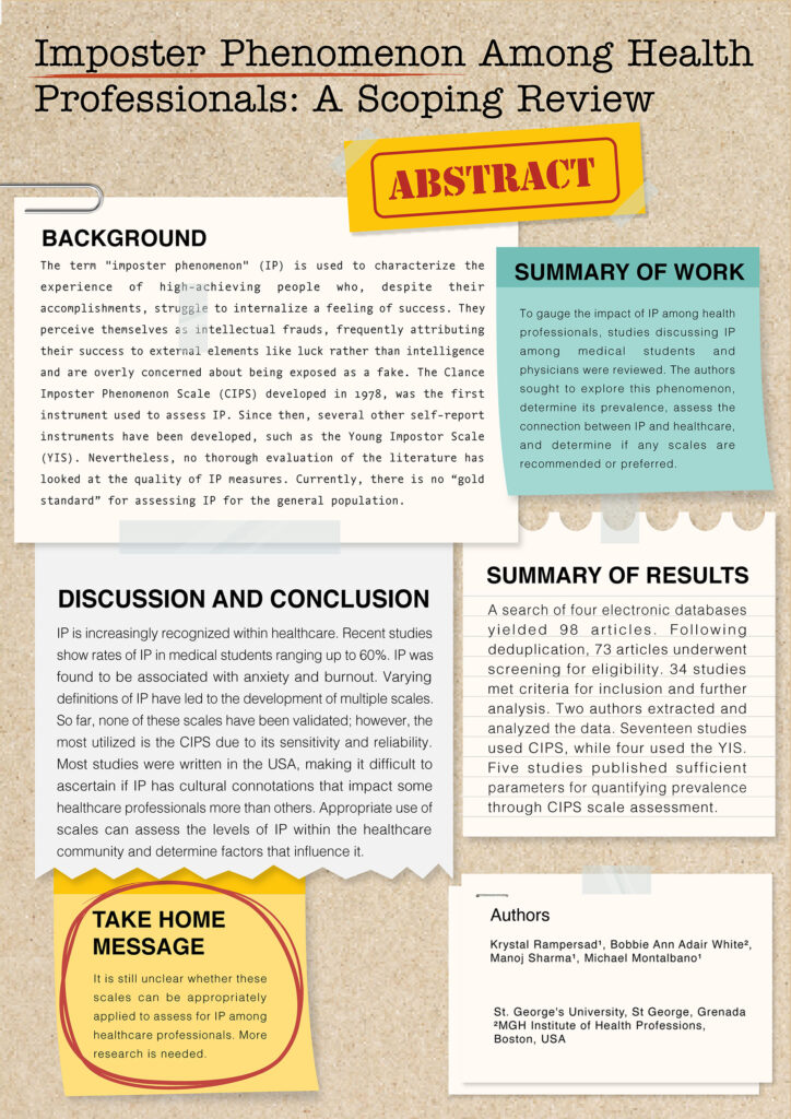 Poster design created for research on Imposter phenomenon in medical students, presented at the AMEE conference 2024.