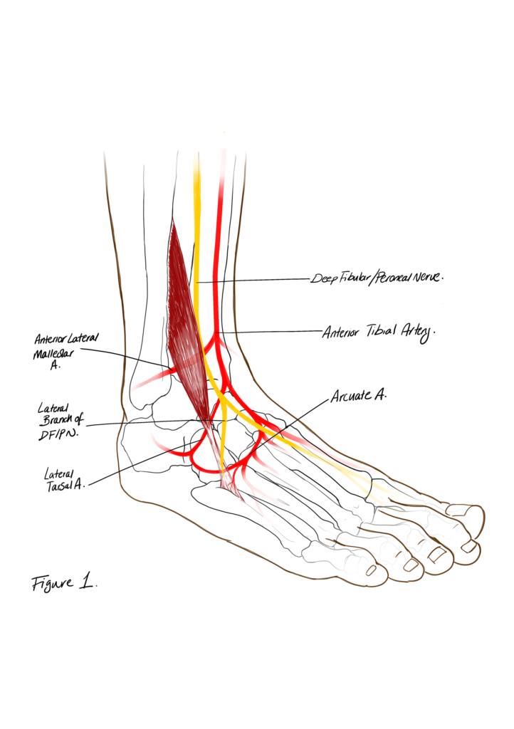 Illustrations and poster layout for research on the prevalence of the Peronues Tertius muscle, presented at the AACA conference 2024.